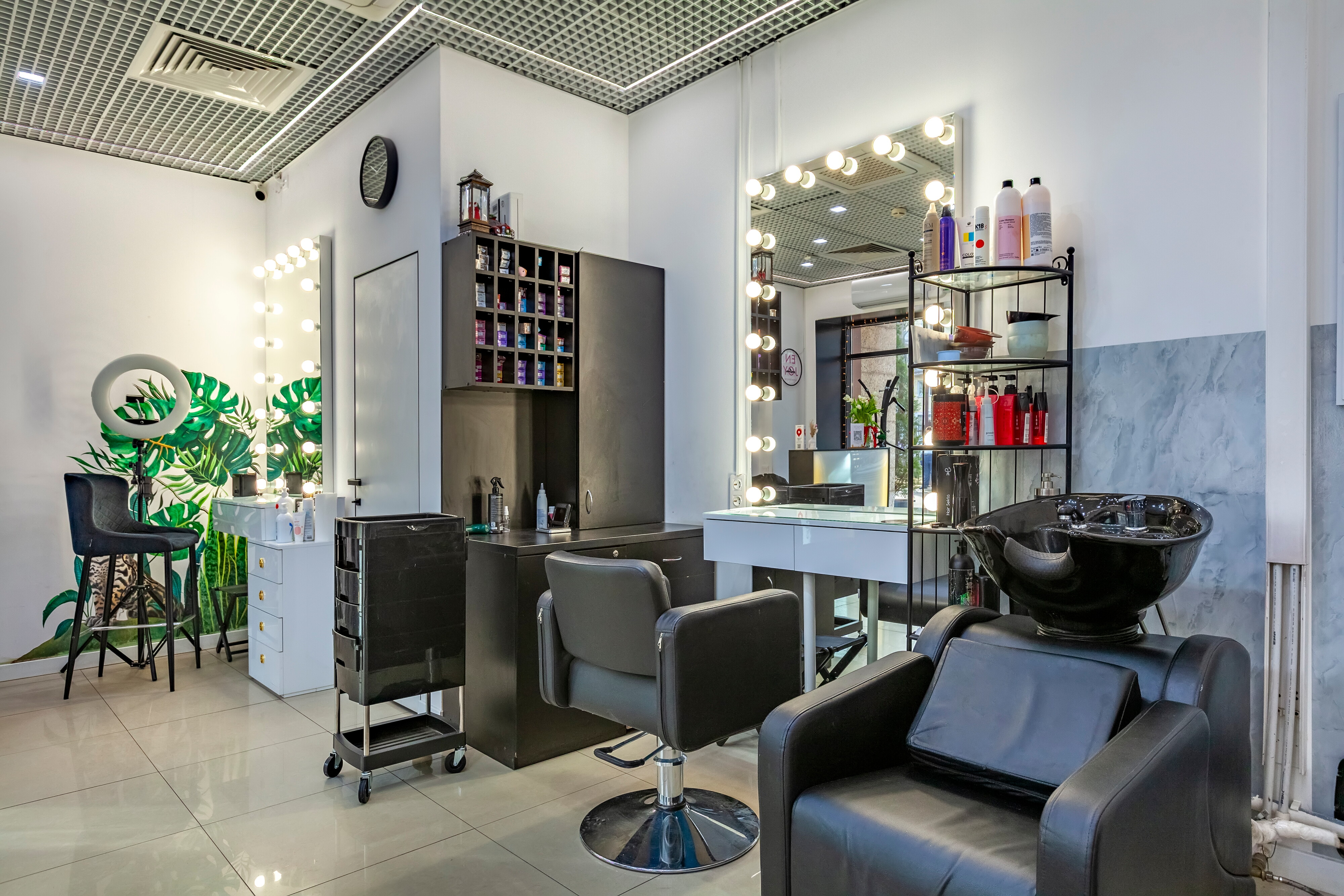 Также к услугам наших гостей пилинг, макияж, коррекция формы бровей, окрашивание ресниц, мелирование, тонирование, выпрямление, укладка и маски для волос, вечерние и свадебные прически, свадебный макияж, мужские стрижки, стрижка бороды и усов, педикюр, в том числе аппаратный, спа-уход для ногтей.